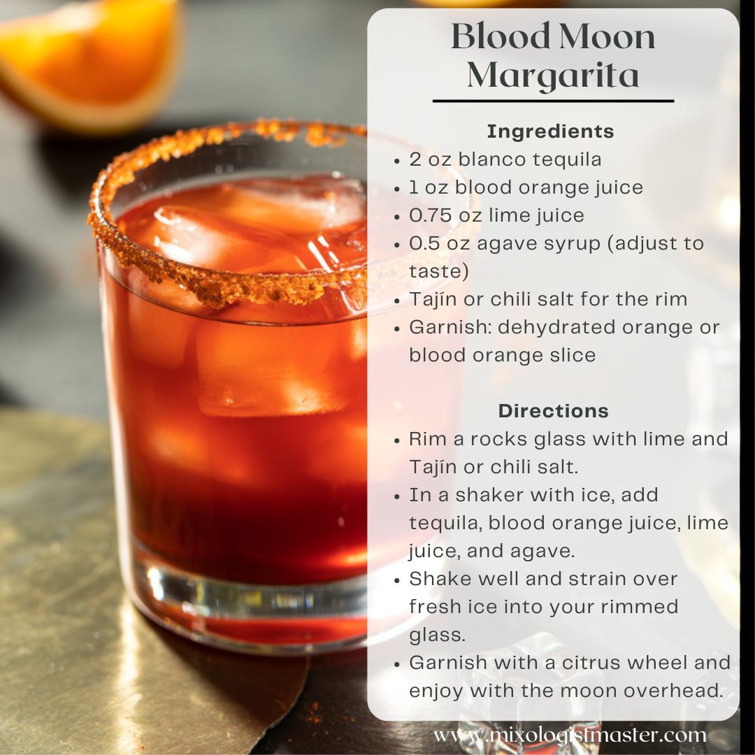 Bold, juicy, and just the right amount of mysterious - this margarita glows with blood orange and a Tajín kick, perfect for supermoon sipping.