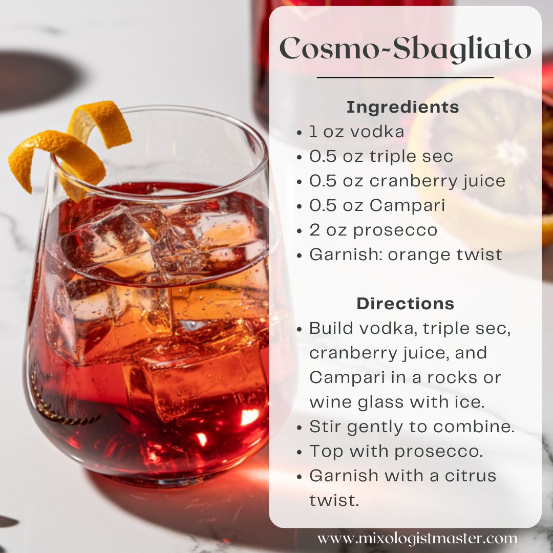 The Cosmo-Sbagliato is proof that your glass doesn’t need to follow any rules, just your mood. So try a little bitter. A little sweet. A little classic. A little “wait, what is this?”